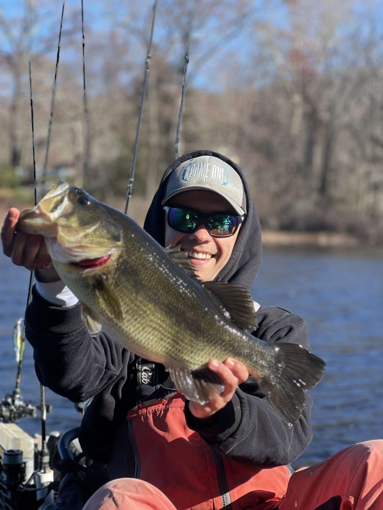 Anthony from Game On Lures provided the following report for the week: “The wind has been an absolute killer recently, but in the short windows of good weather, anglers are still having a ton of success targeting blackfish. The temperature dipped a bit, but for the most part it has remained steady, so both the shallow and deep-water bite should remain great till the season closes. Striped bass continue to filter their way through the area feeding on silversides and peanut bunker. These bass have been picky at times, so smaller baits such as the 5- and 7-inch Duratech soft jerkbait, 1-ounce EXO jig, and 5-inch paddletail have been getting the most attention. The striped bass have been making their way into the holdover rivers pretty heavy, so it’s shaping up to be a not-so-miserable winter! With the windy weather, I’ve looked into freshwater action. The bass, pike, and panfish have been the top priority, and it hasn’t disappointed so far. The lack of rain has dropped water levels on the rivers and lakes pretty significantly, but it hasn’t seemed to affect the fishing much. Small, grassy lakes are going to be your best bet for a good bass/pike bite this time of year. Find what remaining grass is left in the lake and pick it apart with chatterbaits, spinnerbaits, jerkbaits and jigs! Coves and backwaters off the river are starting to load up with white perch and panfish. Using an ultralight rod to vertically jig small plastics on a light jighead is the most effective and fun way to target them. In the alewife lakes, the bass and pike are on the hunt and the key to success is locating the bait. Spinnerbaits, jerkbaits, paddletails, football jigs and umbrella rigs are my favorite ways to target them. If you’re a fan of A-rig season, our new 3.5-inch Duratech paddletails are a perfect pairing to add on your favorite umbrella rig!”