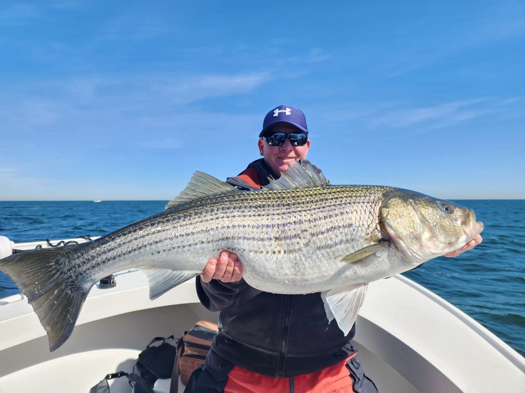 Captain Jamie Clough of Eastern Shore Light Tackle Charters reported that they were back on the big bass in open water this week as more bunker arrived, followed by diving gannets, which led the way to the bite. With adult-size bunker around, the skipper said large paddletails on jigs were working the best. These larger bass are going to be heading into spawning rivers soon, but Captain Jamie anticipates some very good fishing in the week ahead before the temporary closure begins on April 1. Head to their Facebook page for contact info. and reach out for available dates this coming week to get in on the action!