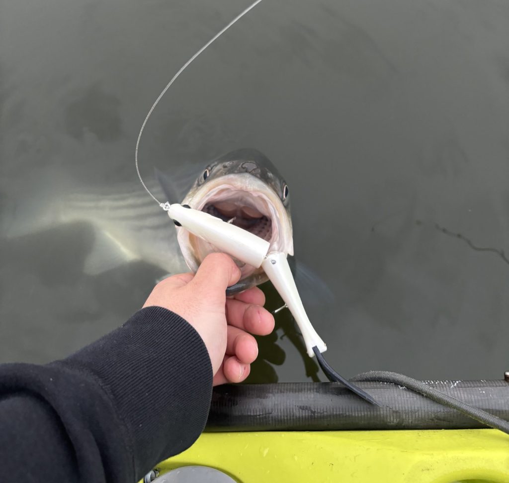 This week I focused most of my efforts in the Raritan Bay where my 19-foot Whaler is currently sitting. Let’s just say it did not disappoint. There are fish to 30 pounds being caught on spin and fly. We’ve been crushing them on full sink lines, big half-and-halfs, and soft plastics on 1-ounce heads. The Z-Man and NLBN plastics in chartreuse have been killer. Small plastics are also deadly when the fish get finicky. A white zoom fluke does the trick when they are stacked but otherwise lockjawed.