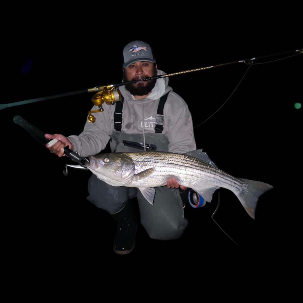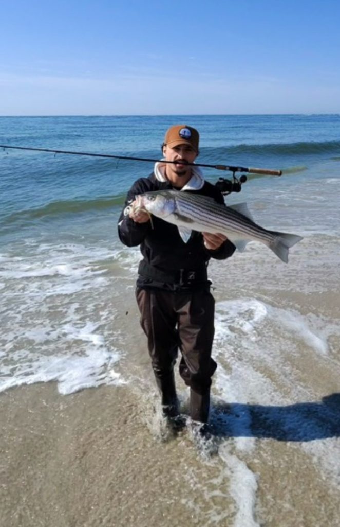 Giancarlo Baldan (@lurewalker) reported from the South Shore surf: “Me and the crew hit the South Shore with one goal: to find the fish we knew were there. As the sky lightened just enough to ditch the headlamps, the bite turned on. The bass weren’t hitting larger plugs—they were dialed in on smaller baitfish. That’s when the old timers started out-fishing all the younger guys on the beach. And there was one reason why: snap jigging. This technique has exploded over the past few years, and for good reason. It mimics the erratic action of a fleeing baitfish in the water column—an almost irresistible trigger for striped bass. For us, this was a first. It all came down to presentation: a rounded lead bucktail under a quarter ounce, no tail needed. Rigged on 10- to 15-lb mono and a rod around 6 feet, it’s a hyper-light setup built for precision. The key? As soon as your bait hits the water, get tension on the line. Snap it back, reel in the slack, and repeat. Don’t forget to fish with a semi-loose drag. You’ll lose more fish than you land if you try to muscle them through the undertow, especially when they’re riding the current right at the lip.”