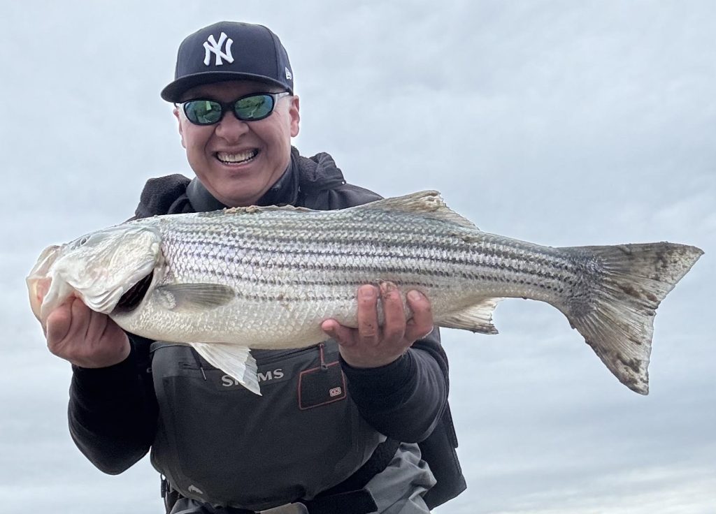 Joe Julian Jr. at Julian’s Bait and Tackle in Atlantic Highlands said it’s happening everywhere. Bass are biting all over Raritan Bay and in the local rivers. He also had a good report from the Rip at the tip of Sandy Hook. A friend of his caught 25 stripers on artificials on the outgoing tide. There’s an enormous number of birds around the Highlands feeding on all the bait, he said. Folks cleaning their catch are finding lots of peanut bunker in the bass.