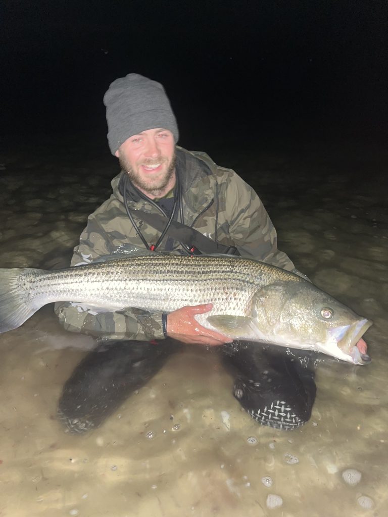 From the isle of Nantucket, Rick Ramos reported: “Striped bass fishing around Nantucket has been gradually improving, with more fish showing up each day. While overall action remains on the slower side, a few anglers are finding success along the structured, open beaches of the south shore. The West End has yet to produce strong numbers, but the harbor is holding fish, thanks to an abundance of bait flushing through the area. The annual Spring Sea Run Opener is officially underway, and the highlight of the week came from angler Victor Boucher, who landed a massive 46-inch striped bass—putting him in a commanding lead for the top fish in this year’s competition. Tournament founder Raf Osona shared his thoughts on this remarkable catch: ‘This is a tournament record. In fact, this may be the largest striped bass landed from the beaches of Nantucket during a tournament in over two decades.’ Congratulations to Victor, who has built a strong reputation for consistently targeting big fish. Once again, he’s setting a high bar for Nantucket surfcasters!”