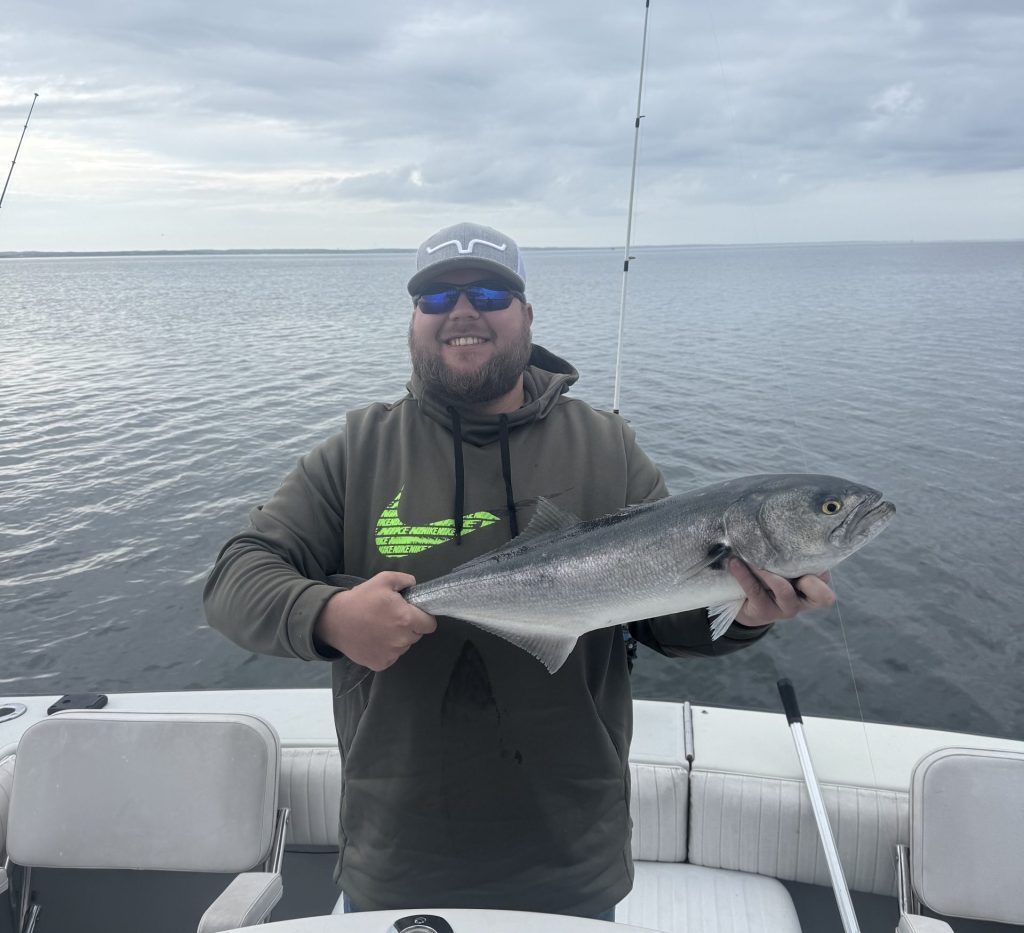 Alex MacMillian of FishLinked Charters in Wareham reported: “Buzzards Bay lit up this week. It seems like you can’t go anywhere without seeing some birds vortexing and some boiling water pop up. Getting the bass to chew, on the other hand, might prove more difficult. We’ve had luck with smaller shads and some topwater plugs, watching size on lures to match the class of fish. While fishing topwater we were met with a welcome surprise—a gator bluefish joined the party. I’m unsure if they are here in numbers yet or if this guy teamed up with some stripers during the migration. A welcome sight nonetheless. Tautog fishing has remained consistent but the overarching feeling is that they will be moving out sooner than later. Looking forward to what next week brings.”
