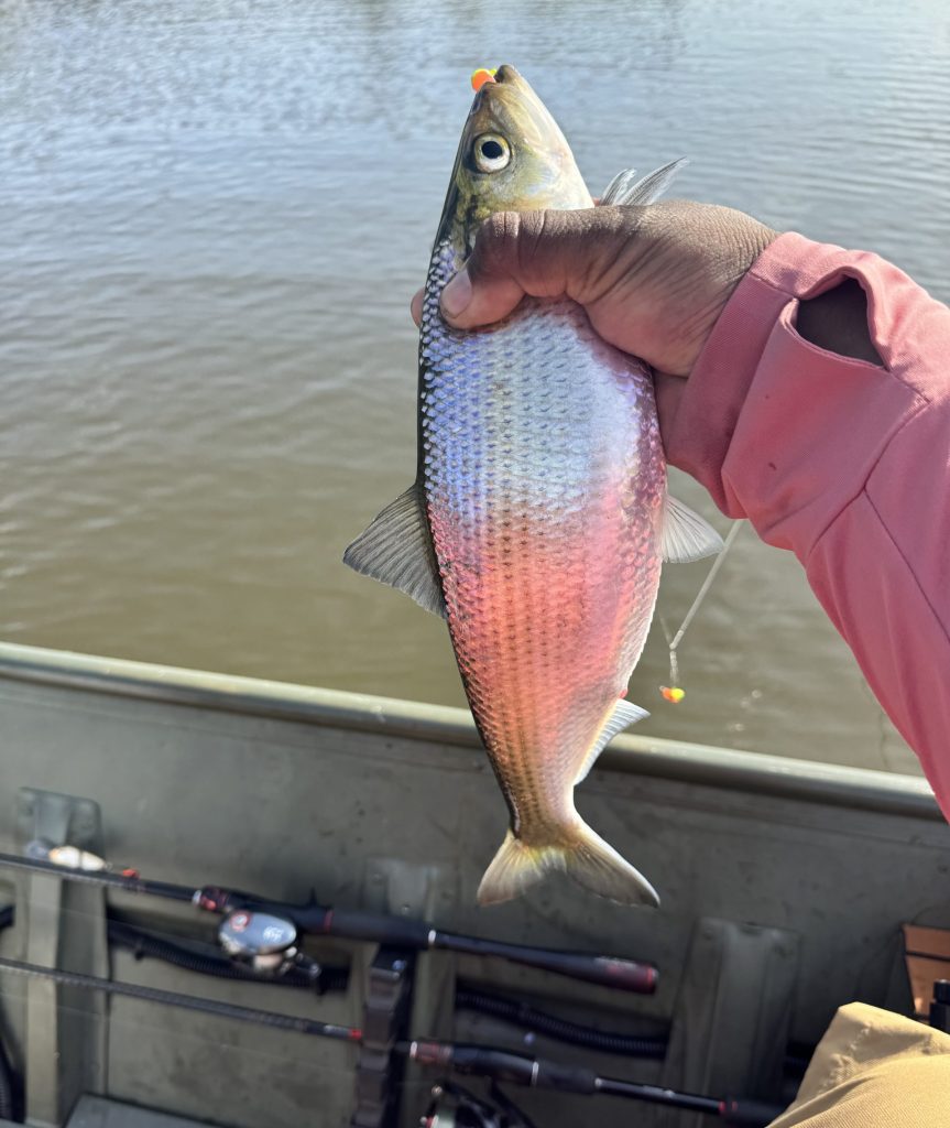 There are still some hickory shad being caught in the upper Choptank River near Red Bridges, and likely the action will not last more than a week. For this catch-and-release fishery, bright colored flies, shad darts, and gold or chrome spoons are often rigged in tandem.