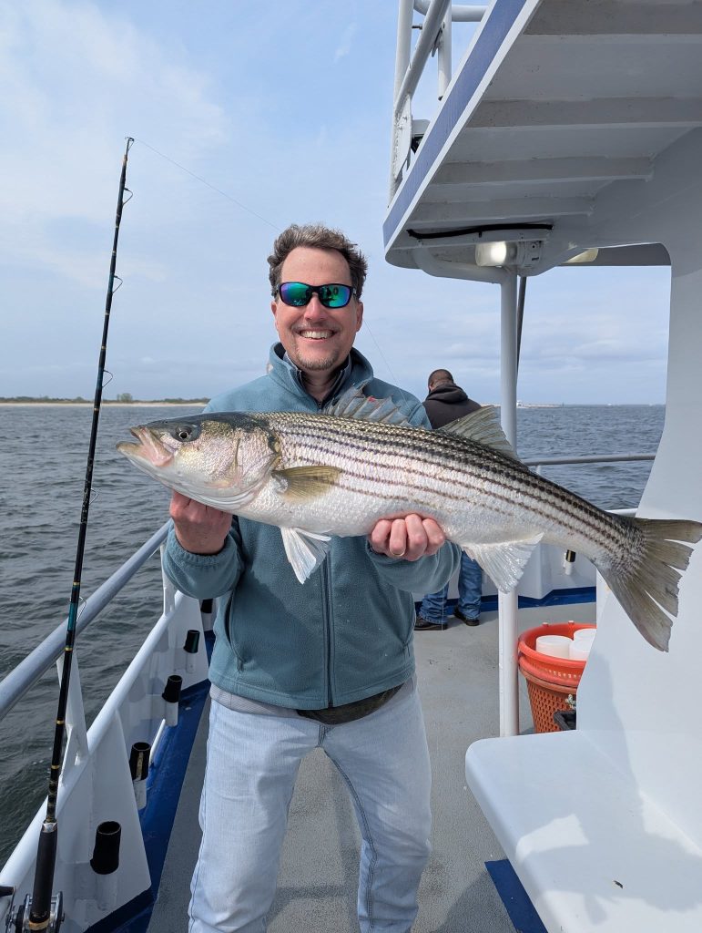 Captain Jay Richardella of Side Job Charters said that striped bass fishing has been lights out whether they’re trolling, live-lining or jigging swim shads. He’s got another week of fishing up near the Raritan before moving down to Belmar for the black sea bass season opener and ocean striper fishing. Give him a shout to reserve your dates.
