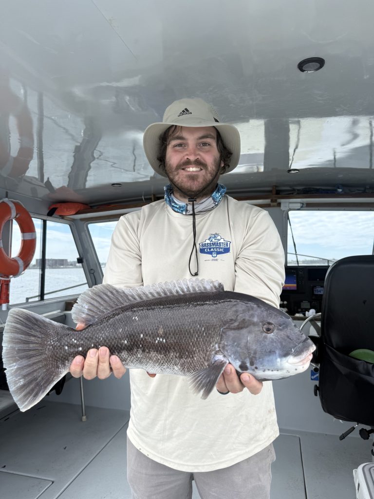 Captain Connor at Tall Tailz Charters is back on the water for the season and provided the following report: “The weather is slowly getting warmer and so is the bass fishing. It seems like each trip we’re seeing more and more fresh migratory fish. Most of the bass are in the 30- to 40-inch range and we’re catching them on flutter spoons and topwater plugs. Further up the bay, there are some bigger fish over 40 pounds feeding on pogies. The tautog bite is starting to slow a bit compared to last week. We’re still getting our limit, but we’re having to cull through a lot of pregnant females. Most of the better drops were in shallower water of less than 30 feet. Along with the tog, we’re getting jumbo dinner plate-sized scup as bycatch. Things are just heating up here in RI and about to bust wide open!”