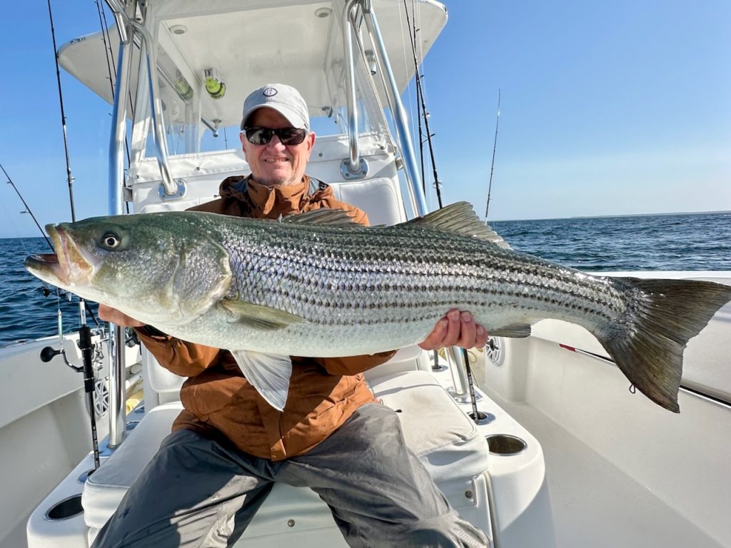 Captain Drew Downing of Down East Charters in Chatham reported: “A week of east wind started sluggish, but the fish adjusted and bait started to come through with more regularity in the last few days. Still a variety down there, but more sand eels and terns in the mix now. Fun fishing to be had on both tides and most edges. Seeing a couple bluefish and oddball bones (bonito) at the point now as well.”