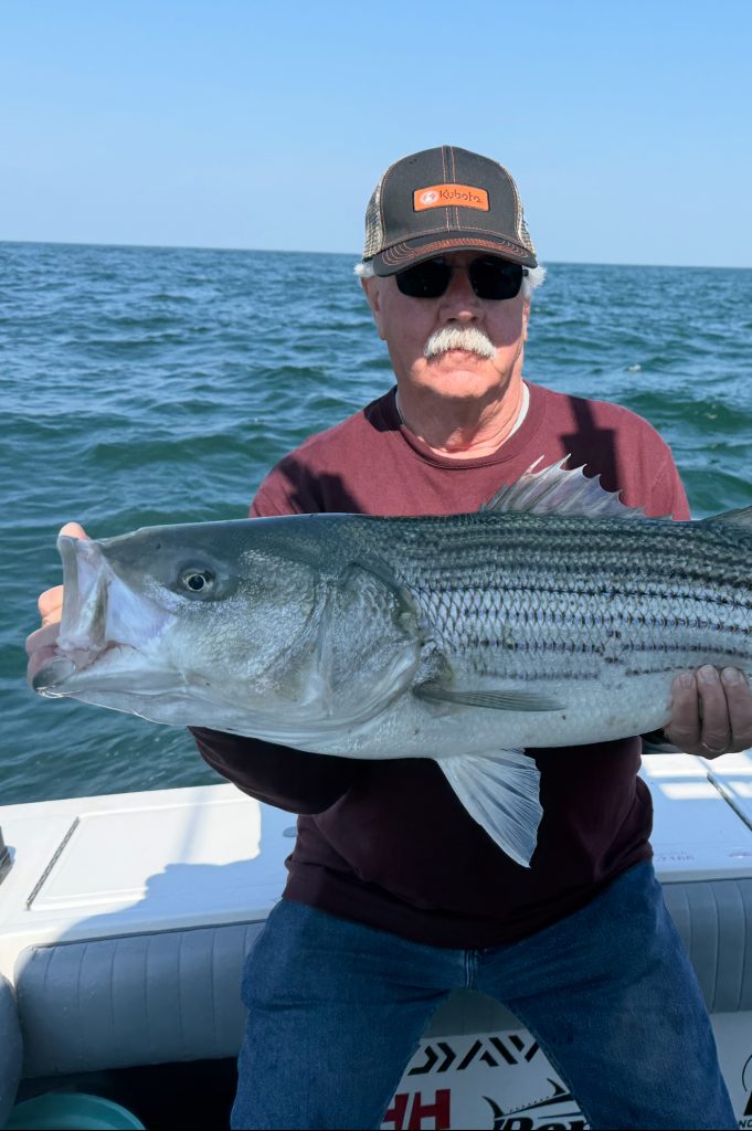 From the Cape Cod Canal, East End Eddie Doherty reports: “The Boys of Summer did well on the east tide as “Bill on the Grill” Prodouz started last week with a 32-inch striper on his line. By Wednesday he had another the same size before landing a 40-inch linesider that fell for a herring Mystic glider, and then a 41-inch powerhouse with a Yo-Zuri bone hydro twitch bait. John “Seadog” Schmidt brought a 35-inch fish to the rocks with his white Savage, “Mashpee Mike” LaRaia had a productive day reeling in numerous slots and Tim “Hollywood” Petracca had fish up to 35 inches with stick shads. “Insane Wayne” Cole worked his 10-foot 1208 RainShadow rod to bring in a 39-inch beauty that attacked his herring Magic Swimmer. “Bloodhound Steve” Colleran coaxed a high-end slot to hit his favorite Al Gags soft-plastic pink jig on an early west rising tide, and Paul Sroczinski fooled a 31-inch striper Thursday with a green mac Savage on an early east flood tide. Kevin “R & D” Blaise used his angling skill to convince 25- & 16-pound bass to hit his white Guppy Jobo pencil while splashing through the east ebb tide. Last weekend went well for Glenn “Lucky Cigar” Lindsey catching a slot on his green mac Savage sand eel and Henry Chong from Canton, reeling in a nice 34-inch fish that fell for his black & purple long soft plastic jig during a west dropping tide before dawn.”