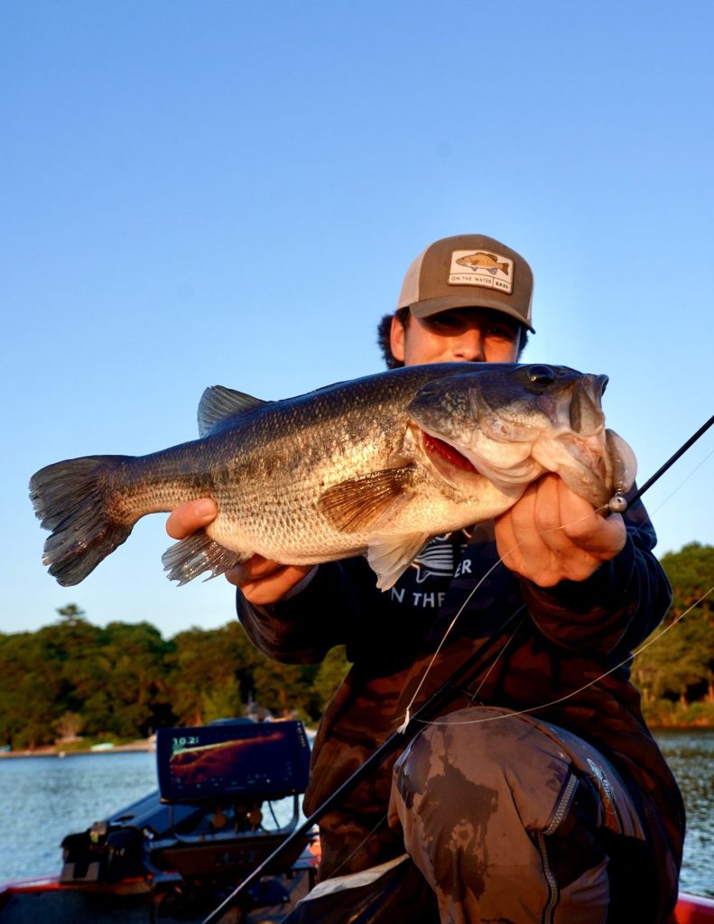 On a different note, we can’t forget about the Cape’s excellent freshwater bass fishery. Our kettle lakes and bog ponds hold some quality largemouth and smallmouth bass, and they’re getting a whole lot of attention lately despite plentiful and productive salt water options. Sometimes, a trip on the sweet water is a nice change of pace. So, I joined my friend and coworker, Robbie Tartaglia, for a late evening bass session on an upper Cape kettle lake Tuesday evening. The fishing was a little tough after some very hot, sunny weather this week, but we used forward-facing sonar—my first time seeing it in action—and watched two aggressive 3- and 4-pound-class largemouth chase down and eat his lures over deep patches of grass. Meanwhile, ticking a Z-Man Jackhammer Chatterbait across the top of shallow grass was the ticket for me.