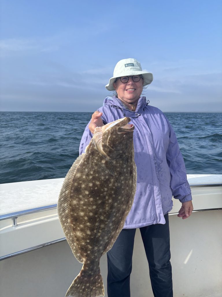 Captain Kurt Freund of Fishsticks Charters on Martha’s Vineyard reported: “We might be entering the ‘dog days’ part of the season. For the most part, this week was very similar to last week, just with fewer fish. I have spent part of every trip either searching for bluefish or at least looking for signs of feeding fish. We have seen some big flocks of terns, but they were over sea bass. Sure, sea bass are fun, but they’re not bluefish. Or bonito. The bluefish have been scarce and I haven’t seen any bonito. Most trips have been at least partly devoted to fluke and sea bass fishing. The numbers of fish seems to have declined, at least in the places that have been productive for us recently. However, and I may have buried the lead here, there have been a couple of outstanding catches this week. Cathy Carlson, who always seems to catch a big fluke, decked an impressive 8-pound rug. This was the biggest fluke on the boat so far this season. Just four days late for the Fluke for Luke tournament, though. Gotta work on my timing. And yesterday, the stars aligned and I had a day off, beautiful weather, and good intel all on the same day. So Bret Benway, John Potter and I headed south (and west) to search for tuna. I couldn’t have dreamed better weather. We left the dock at 3 so that we could be out there at first light. We had lines in by 5:15 or so. We had two fish on the deck by 6:15. Both about 44-inch bluefins. We had just gotten both of those fish on ice when we got a third bite on the troll. This time I was on the rod, which was a treat, as it’s usually my guests reeling in the fish. It was especially sweet because it was on a reel given to me my friend Craig Przysiecki and a rod built for me by my friend Bill Lellis. We released that third fish and watched him swim away. Soon after that, we marked some fish near the bottom and stopped to jig. We hooked up on the jig in short order and after a great fight, released one more fish. Four tuna hooked and landed before 8:30 am. We jigged a little longer, and then went back to trolling. I really wanted to catch a fish on a Madmacs or a DTX Minnow, so we loaded the spread with two of each and two side-tracker squid bars. But we had no more bites. Still, we went 4 for 4, it was a fantastic day of fishing with good friends, we saw dolphins and whales, and as I write this, the pressure cooker is hissing away, processing jars of canned bluefin tuna that we will enjoy for months.”