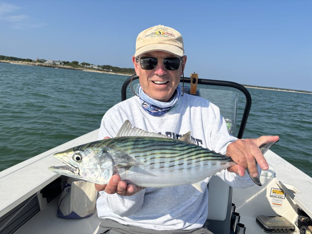 From Martha’s Vineyard, Kismet Outfitters in Edgartown reported: “The bonito bite off Vineyard Sound remains strong, with good-sized fish grouped in small schools, crashing peanut bunker and silversides in well-defined current lines. Tides haven’t dictated good fishing as much as in Nantucket Sound, but the strongest bite has occurred from 6:30 am-11 am, and again from 3:00pm-Sunset. We’re also finding the strongest striper fishing on the north side of the Island, with bass visibly feeding on the baitfish mentioned above; generally under terns.