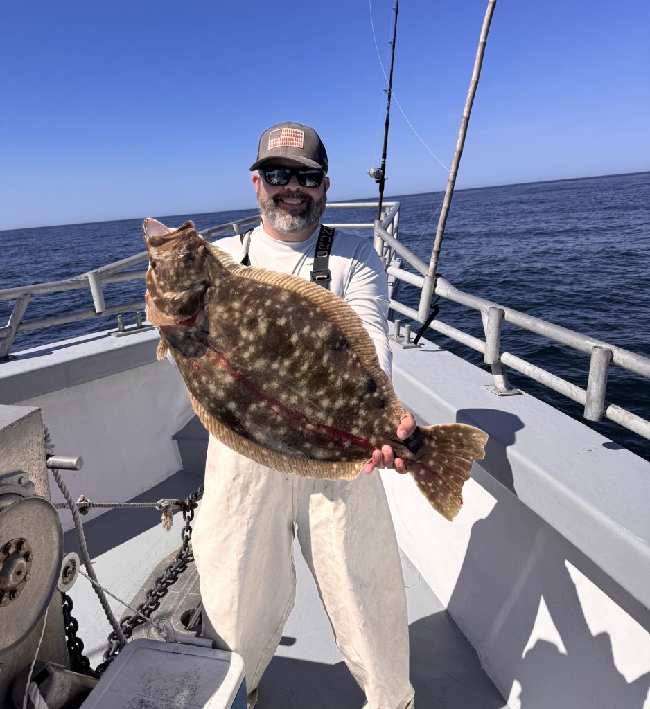 Tyler Huckemeyer of the Helen H in Hyannis reported that fluke fishing at the Shoals has been a slow but steady pick with some nice fish mixed in. They’ve seen seven double-digit fish in the last five days, including a 12, a 13 and a handful of 10s. Bottom fishing in the Sound remains steady for scup, he said, but the water has been a bit too warm for big sea bass. Up in Cape Cod Bay, their boat has been doing well on striped bass with several 20-plus-fish outings and a wide range of sizes from under to over slot.