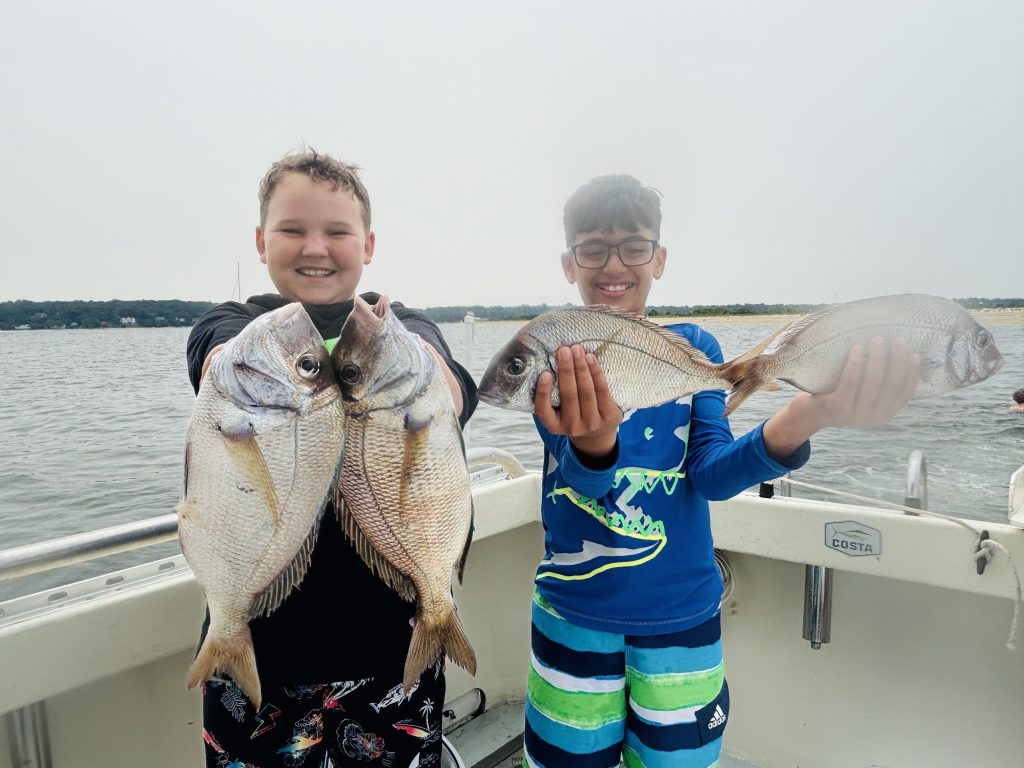 Captain Stu Paterson of Northport Charters (@northportcharters) reports: “We are in the middle of our 7th week of Kids Summer Fishing Camp and they are consistently bending rods. We’re doing well on charters too. Still catching lots of porgies, with Joe hauling in the largest ‘pork chop’ at 2-1/2 pounds! Cocktail blues, spot, weakfish and dogfish are coming up over the rail as well. The bass bite has really slowed down now with high water temperatures in Long Island Sound, but the past 2 days of ENE winds could turn it back on. Call or text 631-707-3266 or visit our website to learn more.”