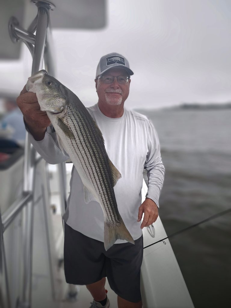 Striped bass fishing has been good this past week with lower temperatures and cloudy skies. Most of the tidal rivers and creeks produced some good topwater action in the mornings or on cloudy days. The Patapsco, Chester, and Choptank rivers, as well as Eastern Bay, are some of the top areas for shallow water action; 4- to 5-inch walking surface plugs and paddletails on 1/4- to 1/2-ounce jigs have been the top producers. Live-lining spot around structure is still working in most areas, especially the northern part of the bay around the Bay Bridge to Pooles Island.