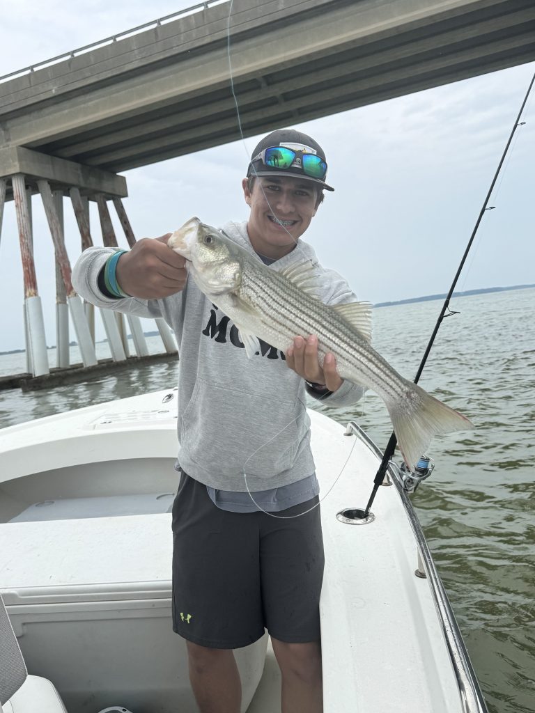 Fishing for striped bass in the middle Bay tends to see the best success during the early morning and late evening hours. Anglers are always drawn to the Bay Bridge when scouting for striped bass and they are finding some success. Drifting with live spot or soft crab baits down current to the bases of the piers at the 30-foot edge on the eastern side of the bridge is reported to give the best results. Casting soft plastic jigs at the pier bases during the early morning hours is always a fun way to fish the bridge piers.