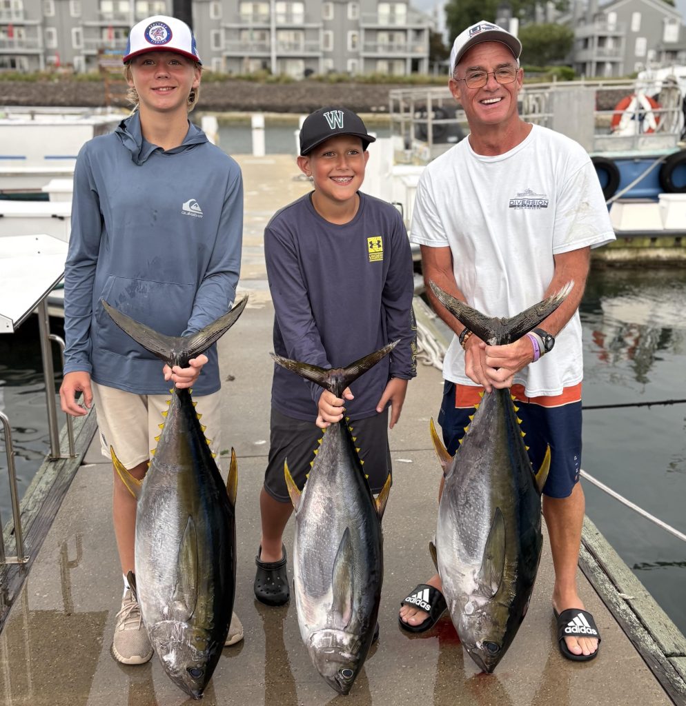 Capt. Jay Richardella of Side Job Charters reported excellent yellowfin fishing before Erin sidelined the boat at the dock. He was also catching fluke and sea bass on inshore trips. He still has open dates and can be contacted through his website.