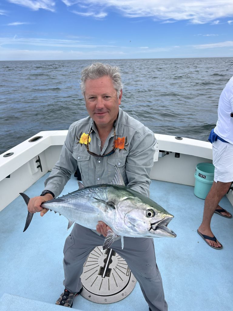Captain Drew Downing of Down East Charters in Chatham reported: “Scatted bass and blues this week made for a few real tough days out front. That said—this morning, the fishing was great and bones were in the mix again as well. Bring the whole arsenal of rods and keep at it. Don’t sit on dead water, put the boat in gear and cover some ground to find transitioning fish.”