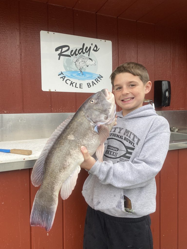 Anthony Charnetski of Game On Lures provided the following report for the week: “Fishing has been improving on all fronts with temperatures finally dropping. Striped bass fishing has been getting better, and some larger fish are starting to move through the area. Schools of adult bunker are starting to show again and have been inciting some exciting feeds. Peanut bunker has been the main forage around this area and I’ve been finding some big schools of slot/schoolie fish bullying them. Giant blues also continue to pop up on most trips. Large plastics, X-Walks, and fluke-style baits have all been working great. Tautog season is off to a great start, and most anglers had no trouble getting a quick limit. I have been targeting the 10- to 25–foot range with our 3/4-ounce Rock Bottom jigs! Both false albacore and bonito have been very sporadic the last couple of weeks, but were showing signs of improvement before the storm, so we’ll see if the nor’easter brought in another wave.”