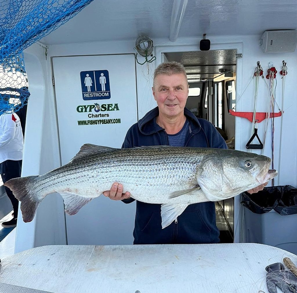 Captain Josh Rogers of Gypsea Charters out of Brooklyn reported: “Another good week of fishing for both boats. The big stripers have begun to filter in; we had fish to 48 inches caught over the past week. Although there were some slots in the mix, most of the fish that came up were trophy sized. On the Little Gypsea, we have continued tov run our J Bay specials, which have been seeing some insane weakfish action with blues, bass, and fluke in the mix. We will continue this schedule until blackfish season opens on the 15th!”