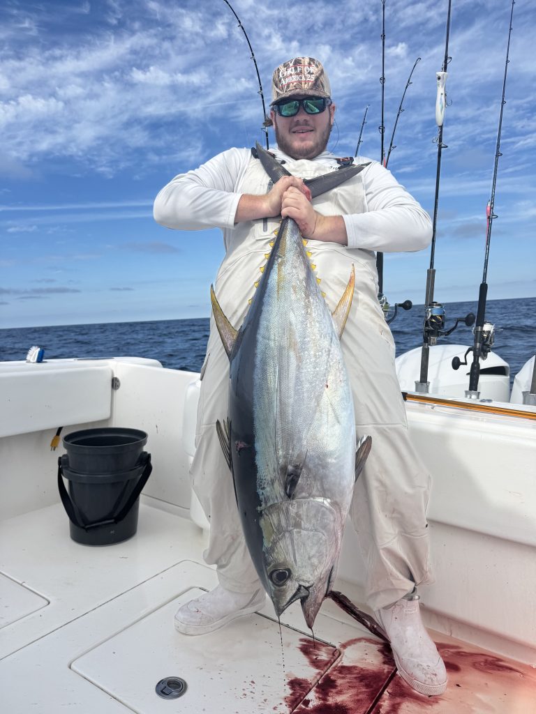 Tom Truehart (@northshoretommy) reports: “Boats and more boats this past Saturday. Once again, the weather has been great for guys like me who can get out on the weekends; the only problem with that is everyone goes offshore. The yellowfin tuna bite has been off the charts and everyone wants in. The guys that got out early did very well behind the draggers but once the fleet developed, the bite slowed down. I tried everything I could think of to get some fish on the boat and eventually we stuck a nice yellowfin. It was definitely a grind compared to other days this past week, but the guys were happy and so was I. Kevin dropped down a butterfish behind a dragger after I had noticed that all the fish were down deep and bam! He was tight before he could even get it into the zone. I’m curious to see what happens after these storms pass. Good luck!”
