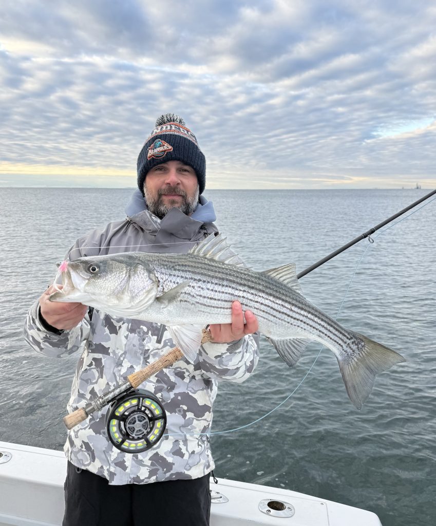 Captain Arthur Cortes of Cortes Outfitters (@cortes.outfitters) in NYC reports: “The fall season is always a special time for us fly guides, and this year has been no exception. The first schools of migrating fish arrived in our area during the beginning of October. Breezy Point was abuzz with bass blitzing on bunker, followed by the birds, creating a chaotic scene beneath the surface. A week later, the sand eels arrived with bass ranging from 15 to 35 pounds, transforming the landscape and requiring us to adapt and persevere. Fast forward to the last week of October, and large pods of bunker flooded our local waters, accompanied by XXL bass. While the fishing hasn’t been particularly fantastic, we’ve been presented with opportunities to catch the fish of a lifetime. We’re excited to see what November has in store and we are confident that we’ll be prepared for whatever challenges come our way. Call 347-326-4750 or visit cortesoutfitters.com.”
