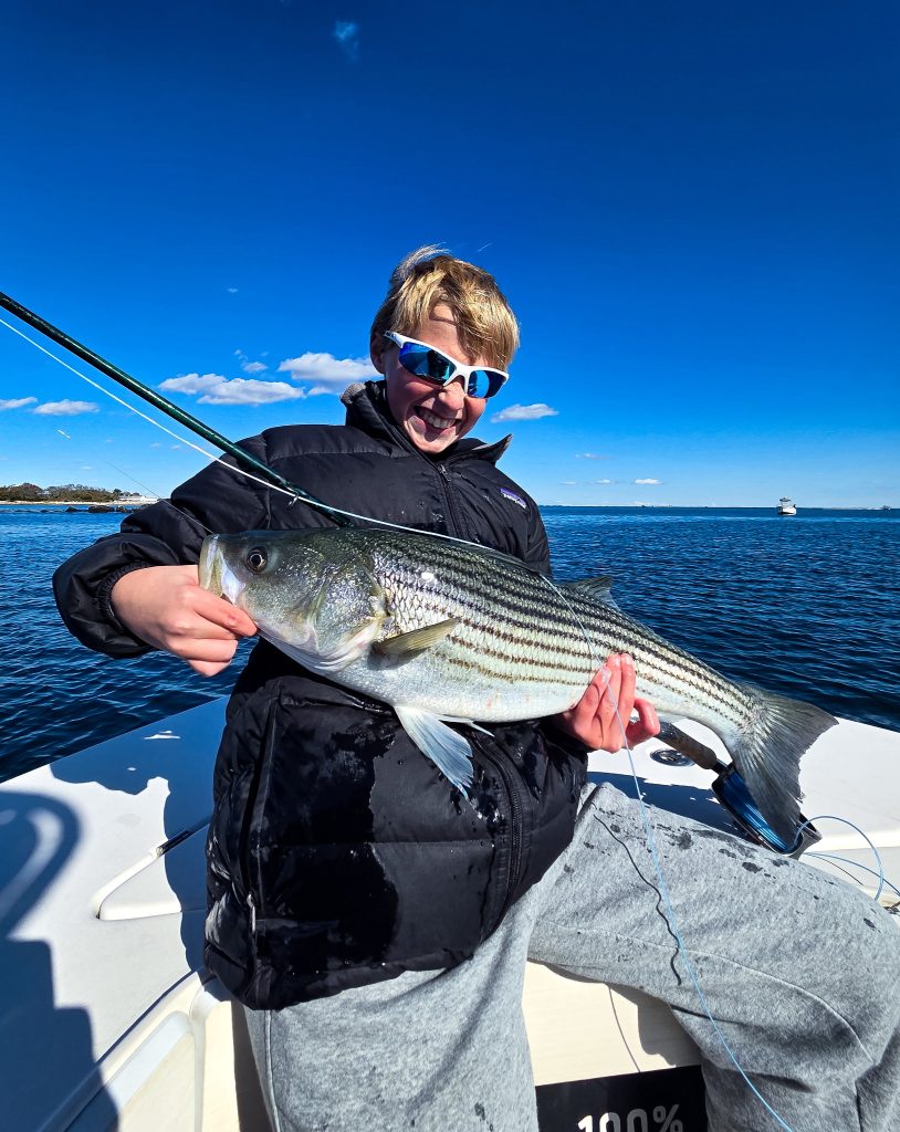 Captain Scott Worth of North Fork Light Tackle Charters reports: “The albie bite on the east end has continued to be sparse following the last nor’easter. However, the bass bite picked up and has kept us busy. Between big fish singling out and crashing on larger bait, to some great shoreline blitzes on anchovies, we’ve landed bass of all sizes on fly and spin. Excited for the wind to lay down this week and focus on the ocean bass bite!”