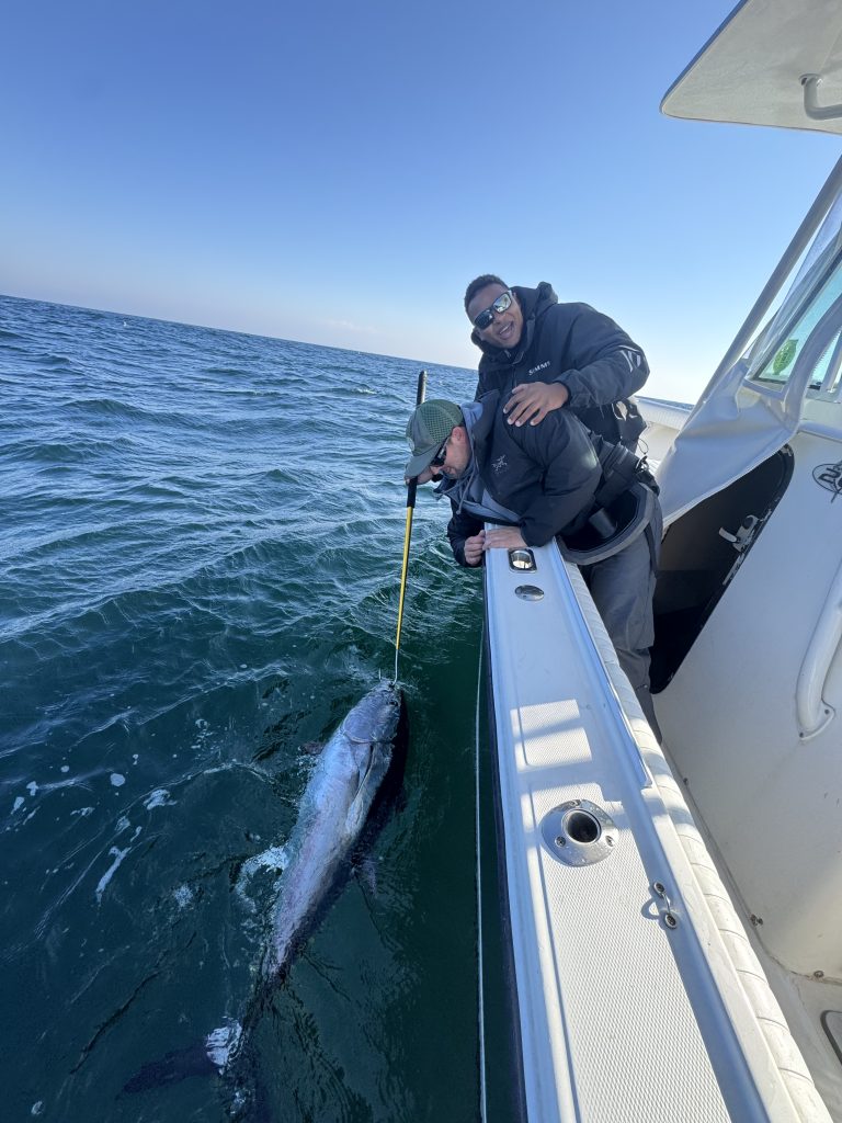 This past weekend I fished both New York and New Jersey. On Saturday, I went out with my good friend Captain Ben Burdine of Apex Angling. While Ben normally keeps his boat in Connecticut, he moved his new Regulator to New Jersey to do some ghost hunting. When Saturday came around we were certainly armed to do just that. Leaving the dock just after sunrise, we made our way into 100 feet of water off the New Jersey coast and were greeted immediately by gannets and busting fish. While we couldn’t keep up with the tuna on the surface, a pod of five or six fish flooded the screen. Naturally, I dropped an NLBN down to the marks and it got smoked. In no time, we had a beautiful rec. size fish to the boat. With safe handling and quick release the fish shot off strong. Fighting these inshore tuna is no joke. They rip!