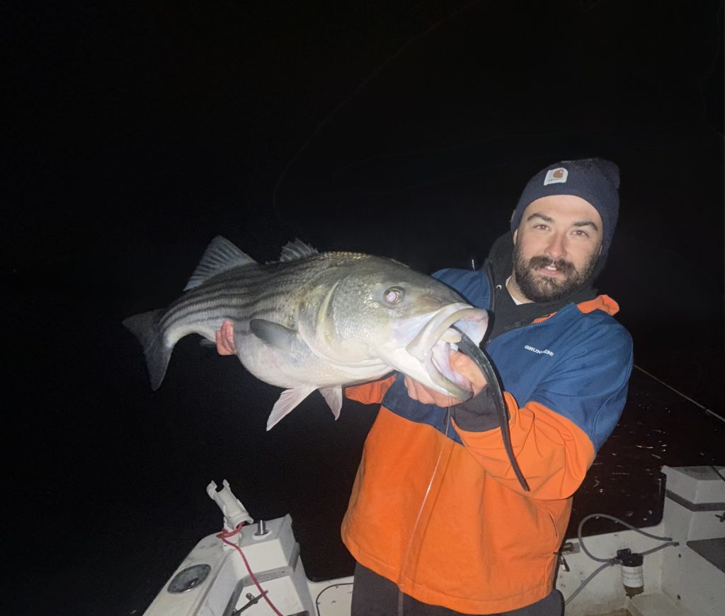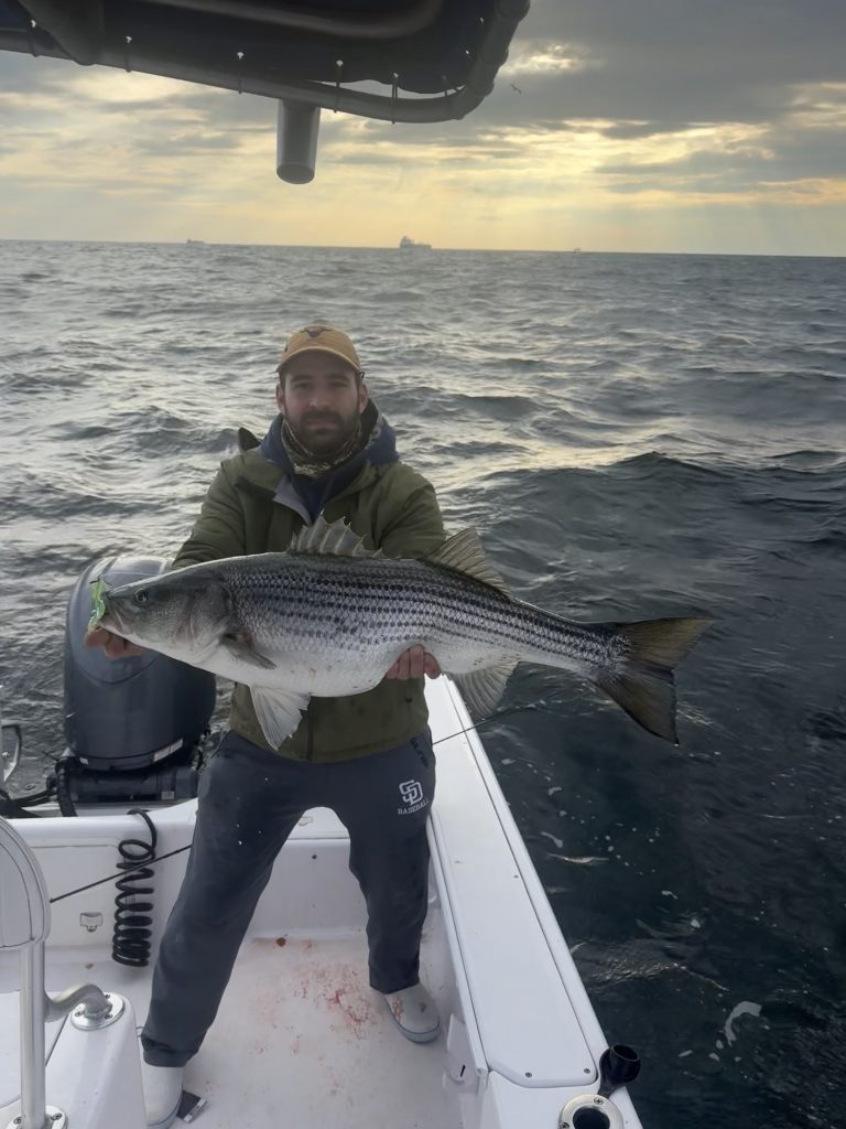 From the surf, Nick Cherkas (@surfcasting_the_island) reports: “I was hit with a dry spell this week due to limited time to get out on the water. The few days I spent in the wash were a disappointment since the majority of fish were out of reach while boat guys enjoyed picking away at a decent wave passing us by. Bass from schoolie size up to about 20 pounds are still being taken on a variety of swimmers, metals and topwater plugs for both surf and boat anglers. Sporadic blitzes along the shoreline are still something to keep an eye out for, although they are not as consistent now. I am hoping we can relive the Cinderella story of the Thanksgiving blitz of 2024. Since my days on the island are numbered, Jersey trips will soon be in order.”