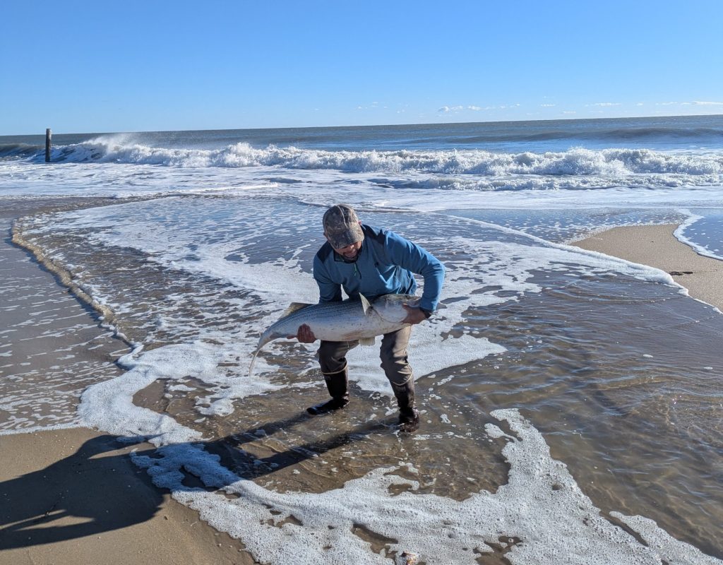 Bakke said it’s one of the biggest tog he’s ever seen caught off Ocean City, and Captain Vince said it was not only Dominic’s personal best, but the largest tog ever landed on his boat. The inshore bite has been good, too, Bakke added. Anglers local to Ocean City are still catching their share of keepers, but they’re not as large as the wreck-dwelling tog of the ocean. The striper bite, he said, continues to ramp up. Surfcasters are catching bass on the area beaches and jetties, and fish are filling into the marshes and being picked off on the bridges. As far as big game, Bakke said, tog fishermen are spotting bluefin tuna airing out within 5 or 10 miles of the beach and even though the season has been closed for some time, their presence has excited the catch-and-release crowd. Late fall/early winter fishing is in full swing!