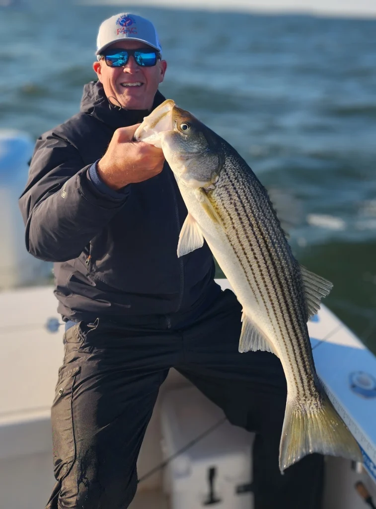 Captain Jamie Clough of Eastern Shore Light Tackle Charters said large schools of stripers of mixed sizes are showing up on the high tides with each passing day, and they are closely following peanut bunker. They’ve had 3 bull red drum in the mix as well, which were welcome surprises. The skipper added that despite the smaller bait, large paddletails on jigs with skirts have been the ticket to their success. While bull reds are on their way out, the striper fishing is only going to improve as the month progresses and more fish return to the Bay. Head to Capt. Jamie’s Facebook page for rates and contact info to get in on the action.