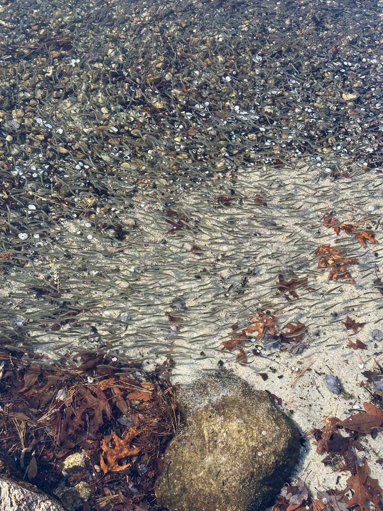 It’s not just little alewives that are lingering in the kettle ponds though, and that should excite coldwater bass fishermen. A few groups of adult river herring have been swimming aimlessly along the same stretch of shore, and while largemouth bass won’t venture from their comfortable deep-water haunts to pursue those mature baitfish, slow-rolling swimbaits, blade baits, or dragging jigs over deep offshore humps and along drop-offs can dupe a late season trophy; I’d imagine that’s what the two fellows in a Bass Tracker just beyond my casting range were doing before they broke out jerkbaits and started picking through 1- to 2-pound smallmouth bass and pesky perch.