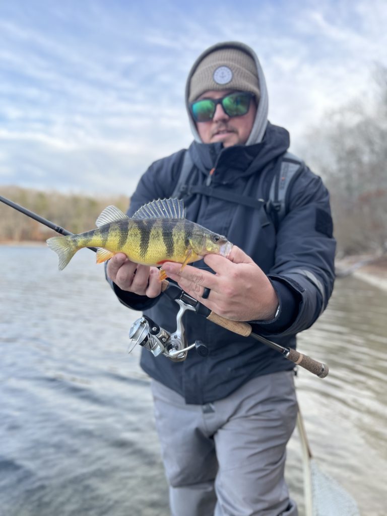 I haven’t tried recently, but I’d imagine that white perch fishing would have been pretty, prettyyy, pretty gooood this week. In cold water when other species are slower to eat, white perch activity ramps up. Locate a school of them and you’re in for some fast-paced action. They’re most active when water temperatures are in the 40s, but they’ll continue to eat even when the thermometer reads mid to high 30s. It’s tough to find them from shore or in waders this time of year, at least in the kettle ponds, but the tidal creeks and ponds on the south side of Cape Cod are a good bet. If you care to hunt for them in freshwater, a boat or kayak will help. White perch will eat pretty much anything you’d throw for stocked trout—curly-tail grubs and micro plastics, hair jigs, spoons, spinners, and small jerkbaits.