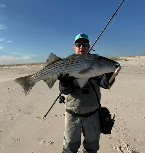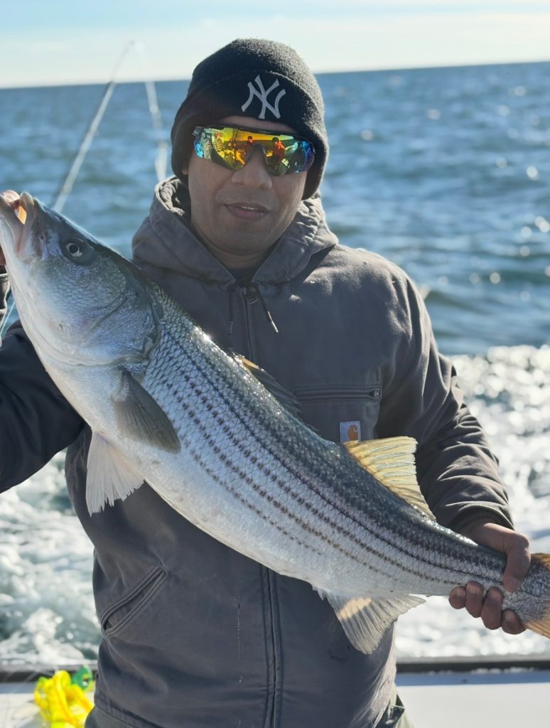 From the South Shore, Nick Cherkas (@surfcasting_the_island) reports: “After a nonexistent bite in New Jersey on Saturday and missing a good bite in my backyard, I decided to post up in familiar waters on the western South Shore on Sunday. It was the right decision and wound up being the best outing of the season, as bass ranging from the teens to twenties were crashing on peanut and adult bunker from sun up to sundown. It was on and off in certain areas, since relocating the blitzing fish required a decent amount of driving. Anything you threw at them worked; it proved to be an exact replication of the great Thanksgiving blitz of 2024. Unfortunately though, this past Sunday was likely my last outing since my ability to get out during the week will be limited. Thank you to all that shared tides with me throughout the year and let’s hope for a banner spring run.”
