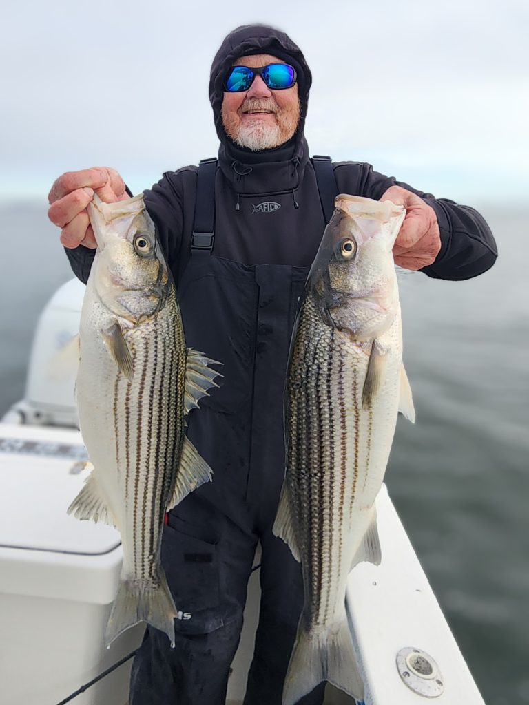 Captain Jamie Clough of Eastern Shore Light Tackle Charters said that he was able to get out for some striped bass fishing in the snow earlier this week; however, he noted that fishable days are few and far between due to incessant wind and freezing temperatures. When he’s been able to get out, the bass bite is very good; there are acres of bait and feeding fish, some of which are in the low-30-pound class, but they are yet to see any cows exceeding 40 pounds. Big soft plastics on jigs (without skirts) are the ticket, and the skipper mentioned that while metals are also working, those fish are generally on the smaller side. Finding the bigger birds, he said, has been the key to locating larger baits which, in turn, are attracting bigger bass.
