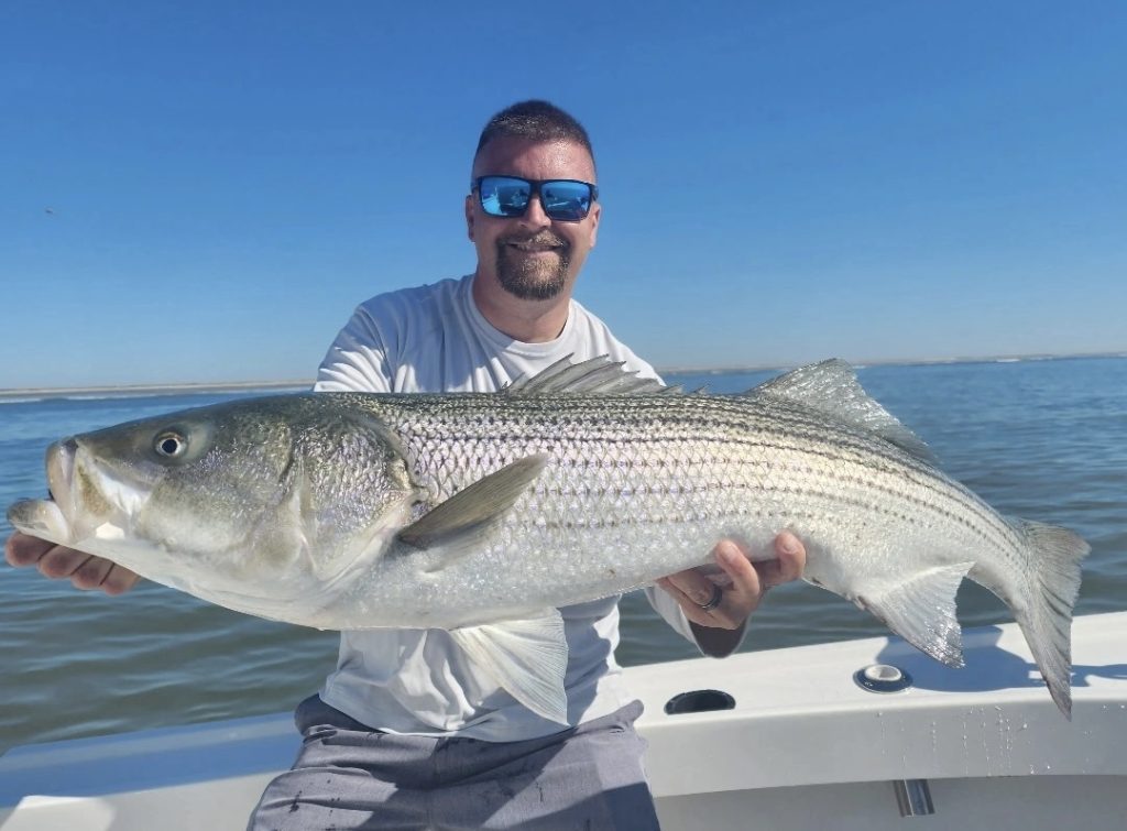 From Ocean City, Taylor Bakke of Always Bent Fishing OC said that the local fishing is getting better on all fronts. Flounder are becoming more abundant by the day—he managed a 17.25-inch keeper flattie for the table earlier this week among a handful of short fish. Tautog fishing in and around the inlet has shown signs of improvement as well, with sand fleas, shrimp, and green crabs all producing bites. But the real highlight has been the striped bass action. The bridges are fishing very well after dark, with bass running the shadow lines and picking off bait on falling tides. Local anglers, like Bakke’s friend Rolando Picardo, have been fishing soft plastic paddletails on jigheads from the bridges with much success. The fish have ranged from the low-30-inch to 40-inch class. There are also plenty of bass to be had in the back bays, he added, and although the bite has been consistent, the fish are generally smaller, ranging from 18 to 25 inches. Bakke also mentioned that Captain Jeff Rosenkilde of Bad Habit Sportfishing, who has been fishing the marshes for bass, landed an unexpected 22-inch speckled trout at his striper honey hole—a nice surprise mixed in with the schoolies, and the first trout they’ve heard of or seen caught in the area this year. There’s plenty of variety for inshore anglers around Ocean City as spring conditions finally settle in.