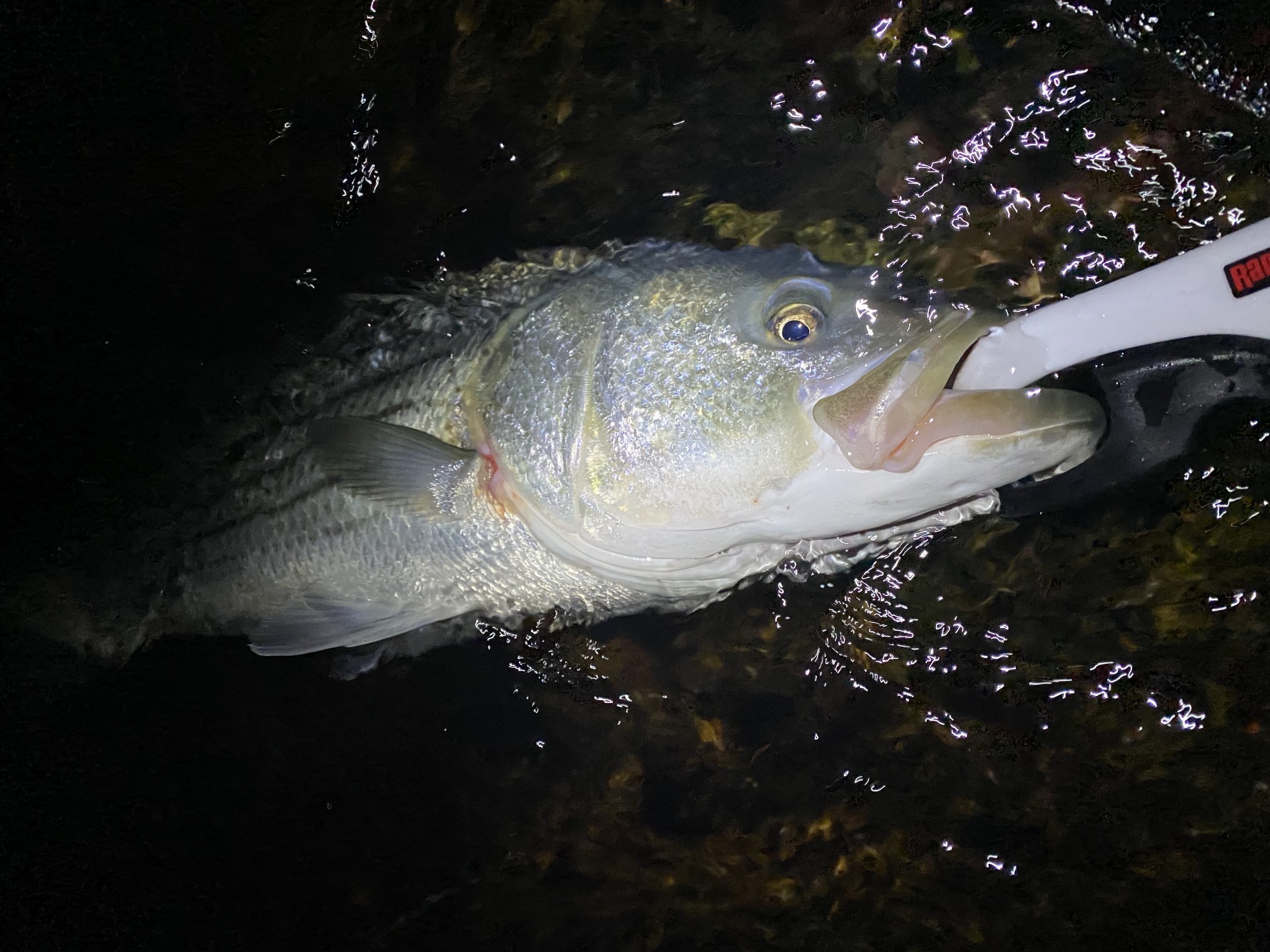 Hit the breachway for Stripers…and landed this acrobatic fish…what a blast…on 8wt fly rod and a grey an white Clouser…headed back for more.