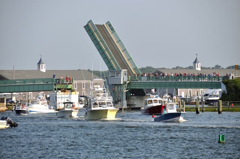 The procession of boats leaving is truly a spectacular sight. Standing on the bow of K2 I was able to film the long line of sportfishers ahead and behind us winding through the bay’s no-wake zone until we reached the breakwater and started steaming out into Nantucket Sound.