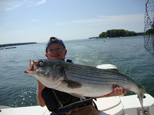 Jack Wozniak with a 47-pound striper caught this week.