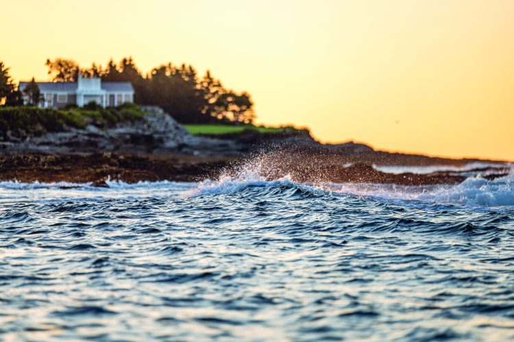 In Maine, bass frequently chase baitfish toward shore, cornering mackerel, pollock, and pogies against the granite ledges. While fish can be caught in deeper water, the most effective way to hook up is to cast your bait or lure directly into the white water, as close to land as possible. Casting a live, weightless mackerel into the break can be extremely productive, but adding a float a few feet above your bait may minimize getting caught in the rocks.