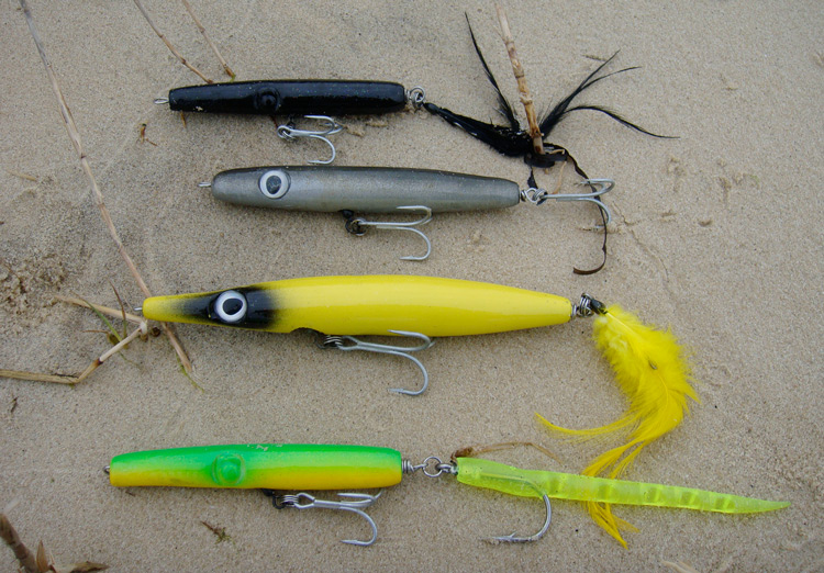 The other plug is the surface swimmer. I like the Atom 40 tuned to swim with a heavy rolling action. Aided by an old flaptail blade, the plug imitates struggling bait fish. The trick is to pop the swimmer ever so lightly make it splash, which seems to annoy the fish. The hit seems to always come just as you’re about to take it out of the water.