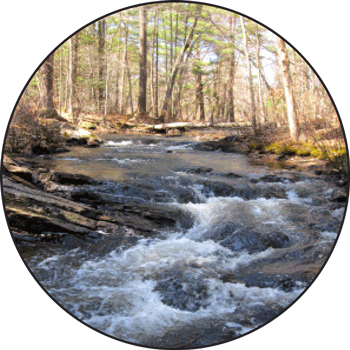 The two streams converge within the Charlie Brown Campground on Rte. 198 in Eastford to form the Natchaug River which is a beautiful, evergreen-lined Trophy Trout Stream, as designated by the Connecticut DEP, for its entire length. Streams that carry the Trophy Trout designation are stocked with a higher proportion of larger fish. The river is also considered a Trout Park by the state within the state forest in Eastford. Trout Parks are described as easy to fish, frequently stocked areas – excellent places to take kids and beginners to introduce them to the sport. The Trout Park is loaded with approximately 5,400 trout annually. The rest of the stream sees nearly 13,000 trout from the DEP. There is a daily creel limit of 2 fish per day imposed on the entire stream.