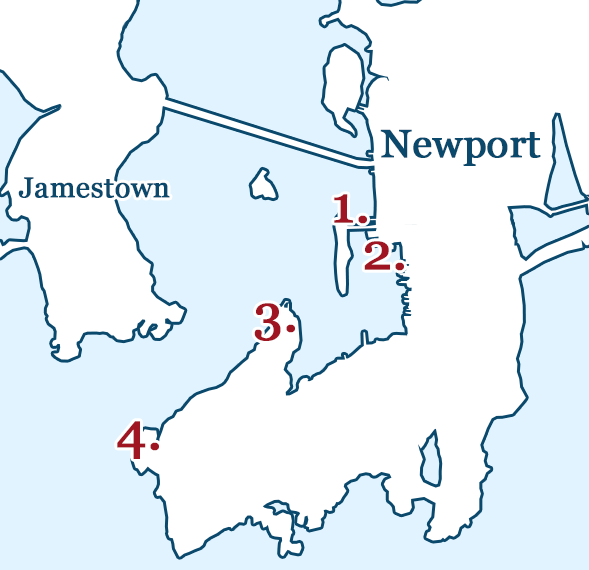 One of the most popular shore-fishing locations in Newport is the bridge to Goat Island. On any given day or night you will find fishermen there trying for squid, fluke, scup, blues and bass. The deeper water just off the center span of the bridge on either side holds fluke throughout the season, which is one reason this spot is so popular (along with the easy access), but because of the fishing pressure those areas can get cleaned out from time to time. If that water doesn’t pan out, try moving closer to the sea wall on each side of the bridge. If jockeying for position on the bridge isn’t for you, try around any of the angled corners on the sea wall. Park at the foot of the bridge on the Newport side.