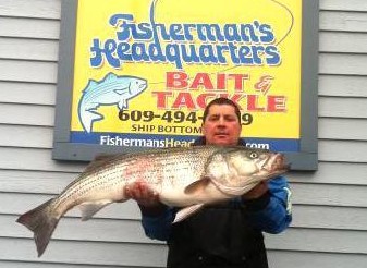 Steve Rupinski weighed in this 43.5-inch 32.9-pound bass at Fisherman’s Headquarters in Ship Bottom on Tuesday, May 1, the first day of the tournament.