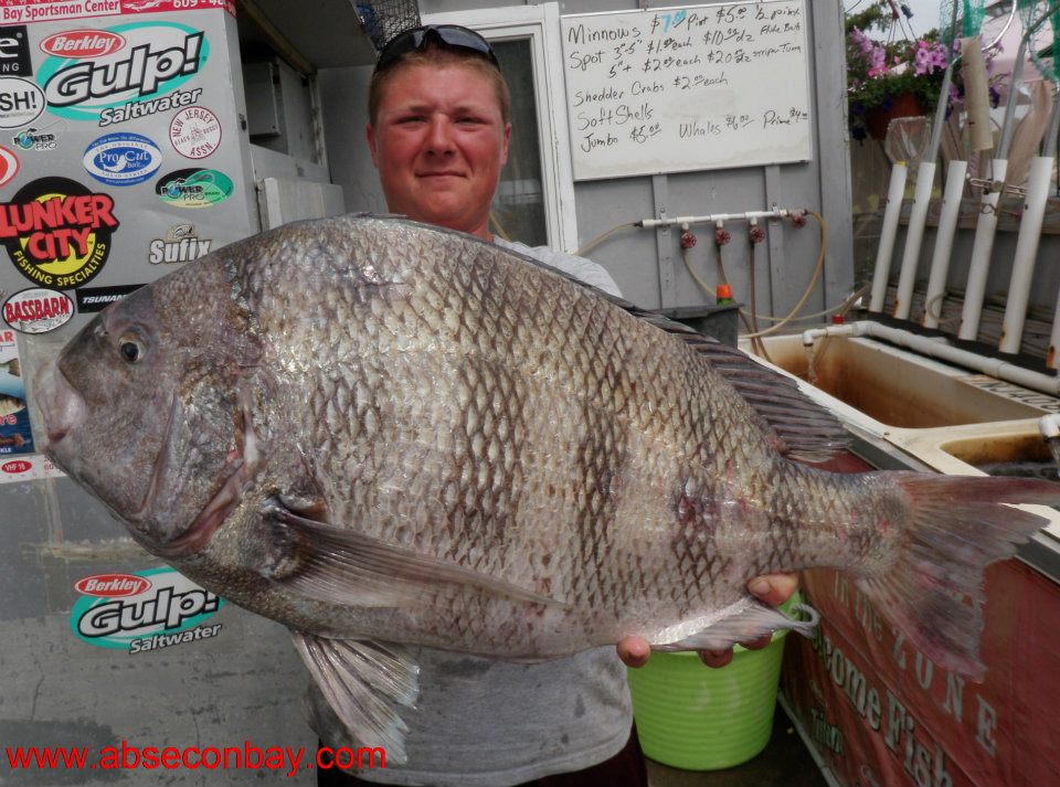 Not that it was much in size but I caught a 17 inch sheepshead in the Shrewsbury River Yesterday while Jigging for Fluke with a Gulp Shrimp.I also picked 4 Kingfish on the same bait from 12 to 14 inches plus numerous smaller ones.