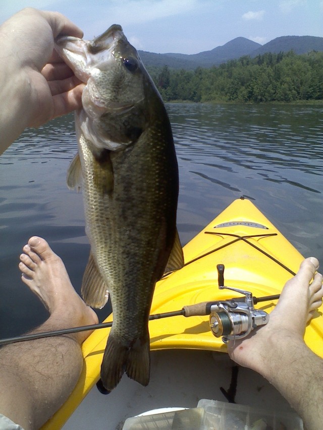 7/14 – Immediately after returning from ICAST, I had to run up to Vermont for a wedding. Fortunately the hotel was on a lake and rented kayaks. Never leave home without a rod in the truck!