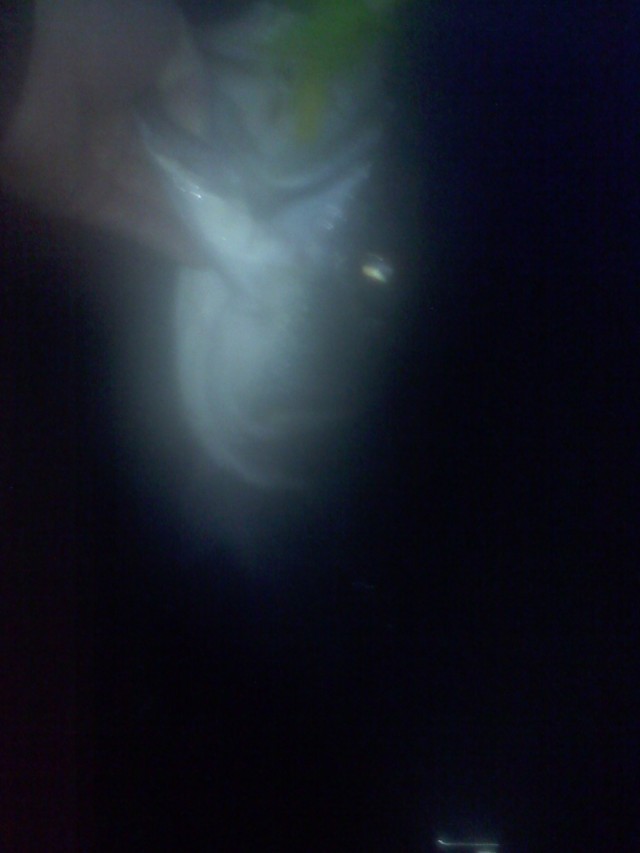 5/31 – A good-sized bass taken on a lime-green bucktail just after dark.