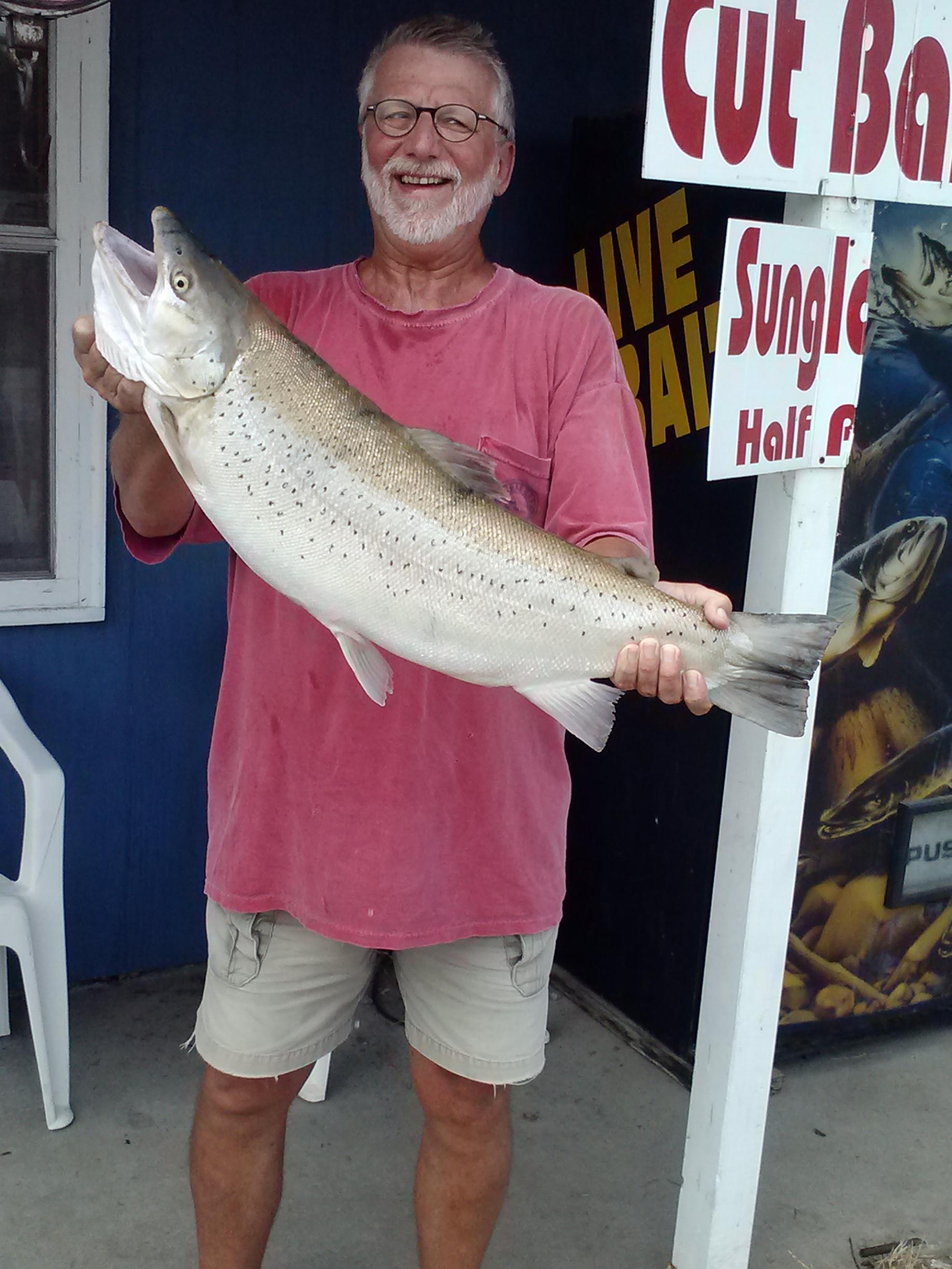 Jacksonville, FL with his first salmon, a 21 pounder out of Olcott with Cinelli Sportfishing.