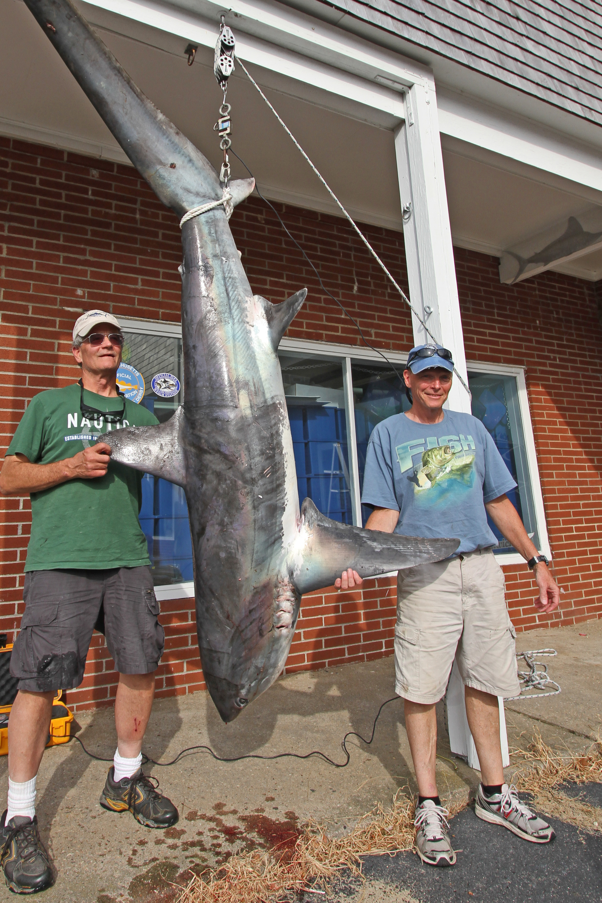 Since it took our entire supply of ice to cool down the shark and by now it was past noon, we decided to quit tuna fishing and call it a day. As we rounded the tip of Monomoy Island, I called Dan at The Hook-Up and asked him if we could bring the shark in for an official weight. We pulled it up onto his scale and it weighed 267 pounds gutted. Not the species we were targeting that morning, but quite a memorable catch nonetheless. And we have plenty of delicious thresher shark steaks for our families and friends. We’ll take it!
