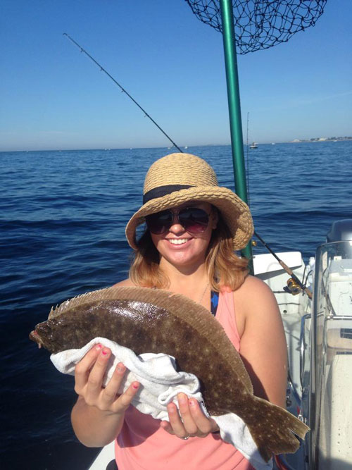 Fluke – Fluke are just gorging themselves on squid. The usual places are still producing but the ratio of shorts to keepers is not favorable. A few weeks ago anglers were catching a lot of shorts but also some real doormats in 35-45 feet of water. Now the better reports are coming from deeper water. Pictured is Christie Drube with a beautiful fluke. Keep jigging buck tails tipped with squid. If you’re having a hard time finding the big ones, deploy a fluke bomb!