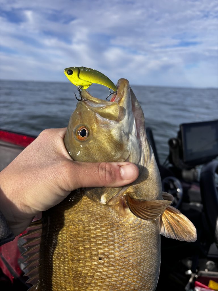 The colder the lake, the better a blade bait works. These lures are heavy, easy to control in deep water, and closely mimic dying baitfish. Northeast smallmouth absolutely crush blade baits yo-yo’d off the bottom. The key is to avoid overworking the bait. Don’t lift it too much; it’s crucial to lift it just enough to vibrate, then let it sink to the bottom. A blade bait excels within six inches from the bottom. My go-to blades are a Fish Sense Binsky and a Molix Trago Vib. Both lures have great action and come in a wide variety of colors to match the hatch.